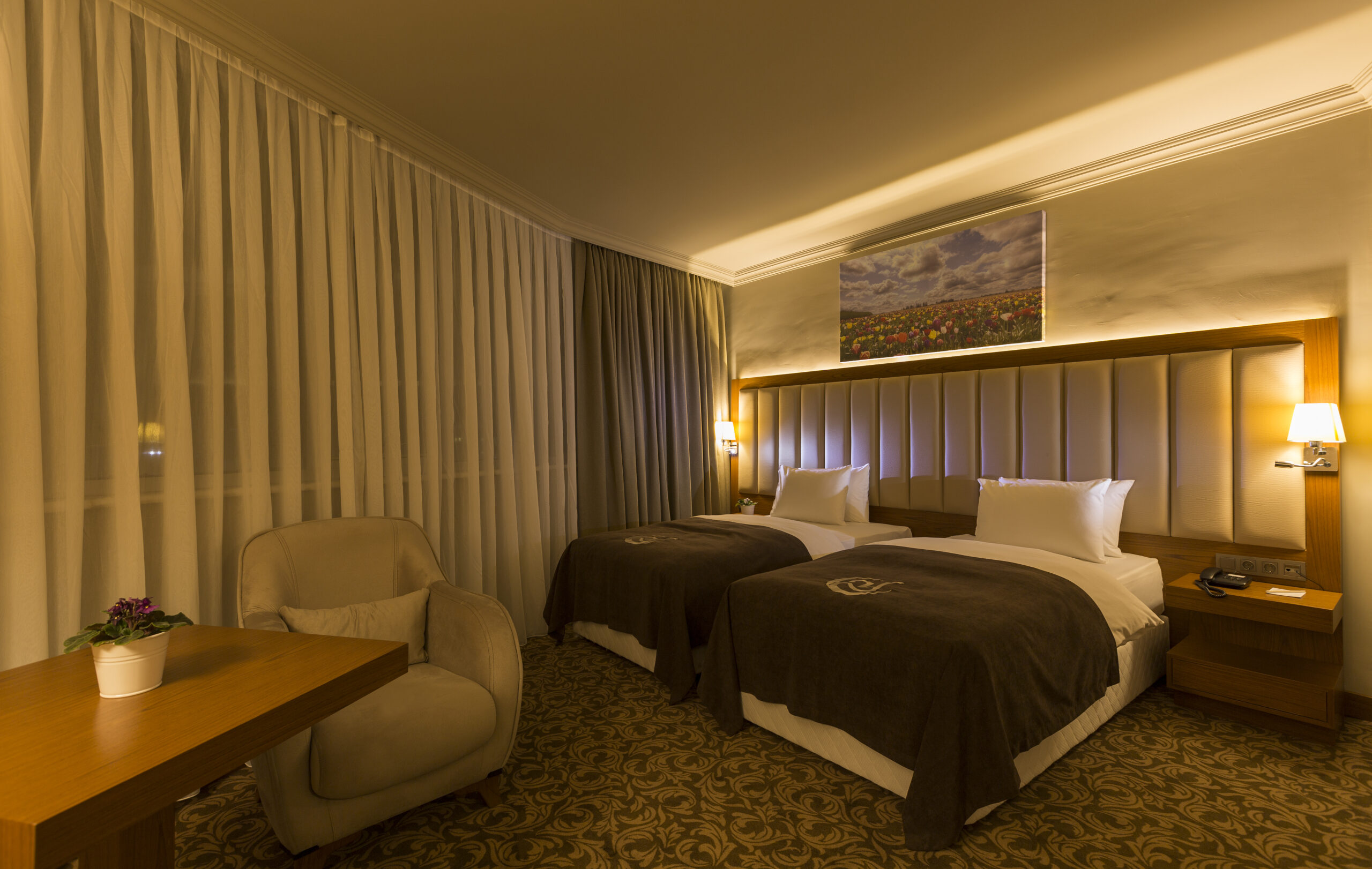 Our Standard Twin room with two separate beds offers a pleasant stay with its spacious space and modern design.